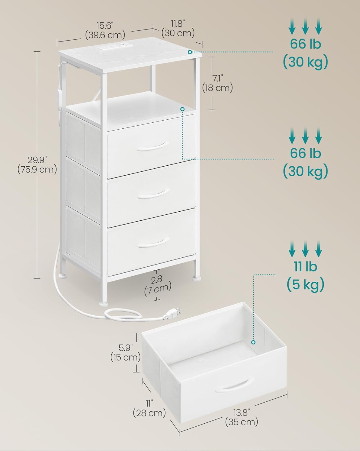 Sturdy & Safe: Crafted from particleboard and steel, this night table supports up to 66 lb on the open shelf and 11 lb per drawer. The included anti-tip kit secures it to the wall for extra safety