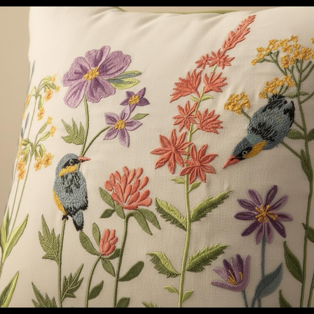 The vibrant design stands out thanks to detailed hand-stitched floral patterns and realistic bird motifs, creating visual depth that draws the eye. Whether used as standalone accents or paired with solid-colored pillows, they enhance texture and color without overwhelming the space. Their square shape fits standard 18-inch inserts, offering a snug yet breathable fit.