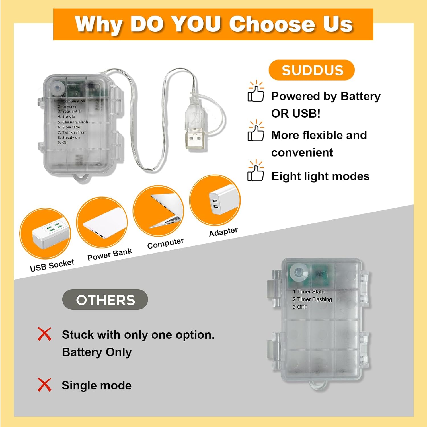 [DUAL POWER FREEDOM: USB + BATTERY]: Worried about finding the suitable teenage girl gifts? No outlets by the nursery corner? Hosting outdoor parties? Our versatile fairy lights solve it all with a 2-in-1 power system. Plug into USB for a continuous glow or use batteries (3xAA not included) for a completely cordless setup. Now you can decorate gardens, weddings, or balcony cafes without limitations—unlike restrictive single-power fairy string lights.