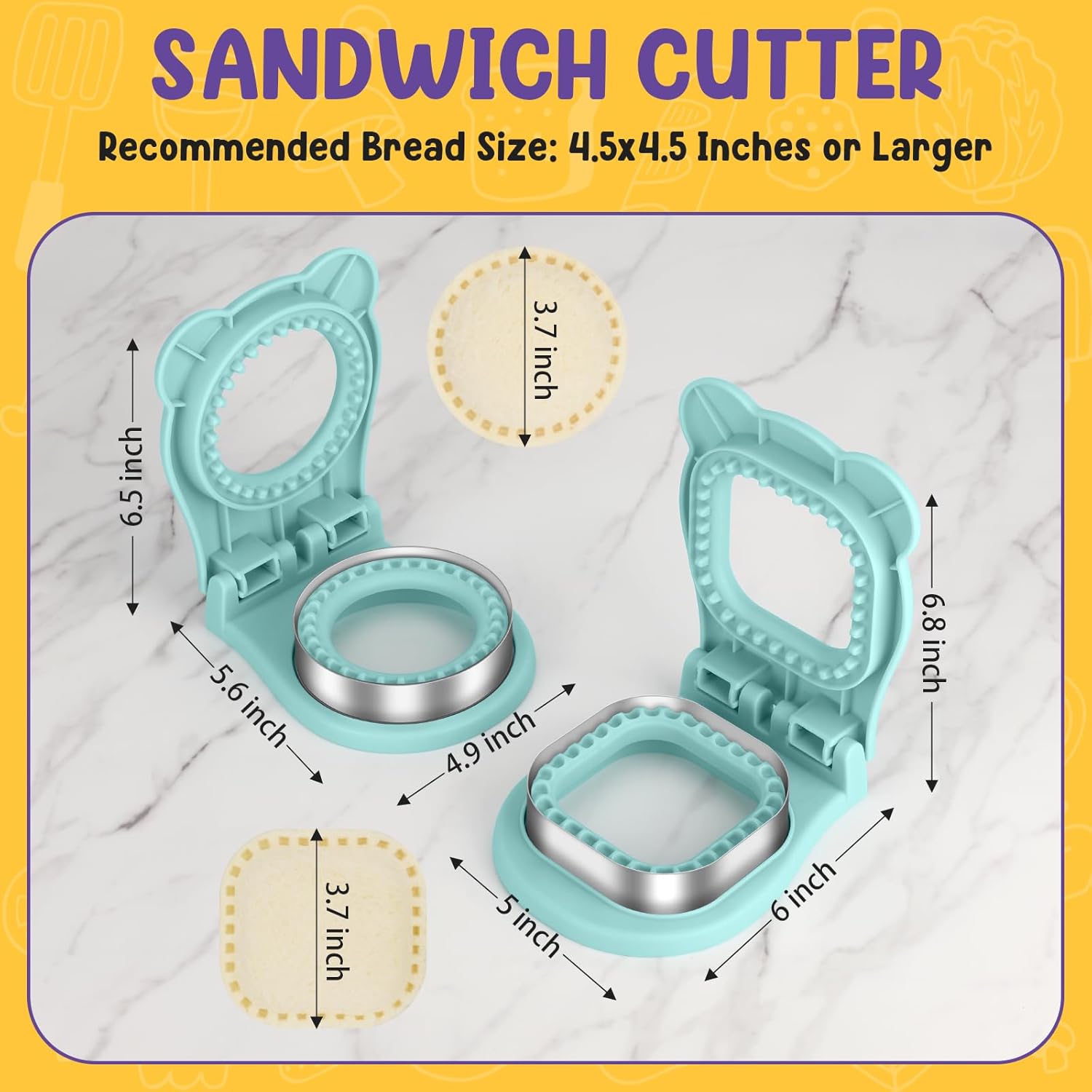 [Sandwich Cutter Use Tips] For ultimate sealing, we suggest utilizing bread slices sized 4.5″x4.5″or bigger. You’ll want to heart your fillings and keep away from overfilling to cease leaks and obtain a clear, safe seal each time