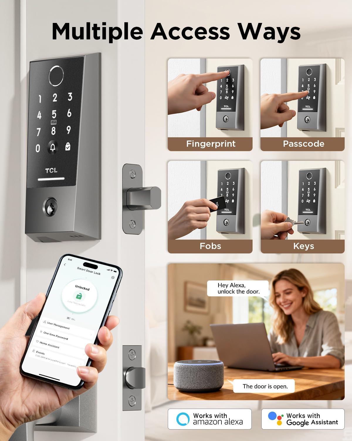 True Hub-Free WiFi Connectivity: Say goodbye to sophisticated setups and further prices! Our sensible lock connects on to your house Wi-Fi, enabling instantaneous distant entry and notifications via the TCL House App. No extra gateway or hub is ever wanted.