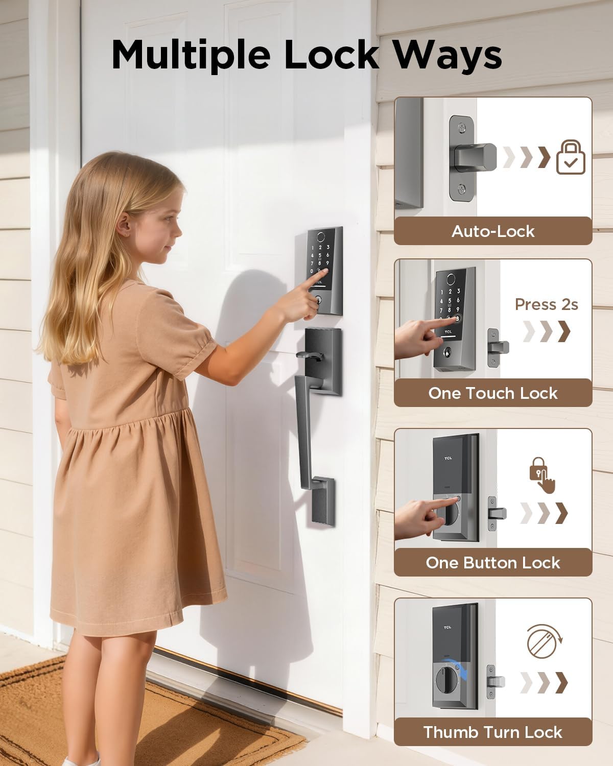 TCL D2 Plus Smart Lock, Fingerprint Door Lock, Built-in Doorbell & Wi-Fi, No Hub Needed, Keyless Entry Electronic Deadbolt for Front Door, Compatible with Alexa, Auto Lock, Easy Install