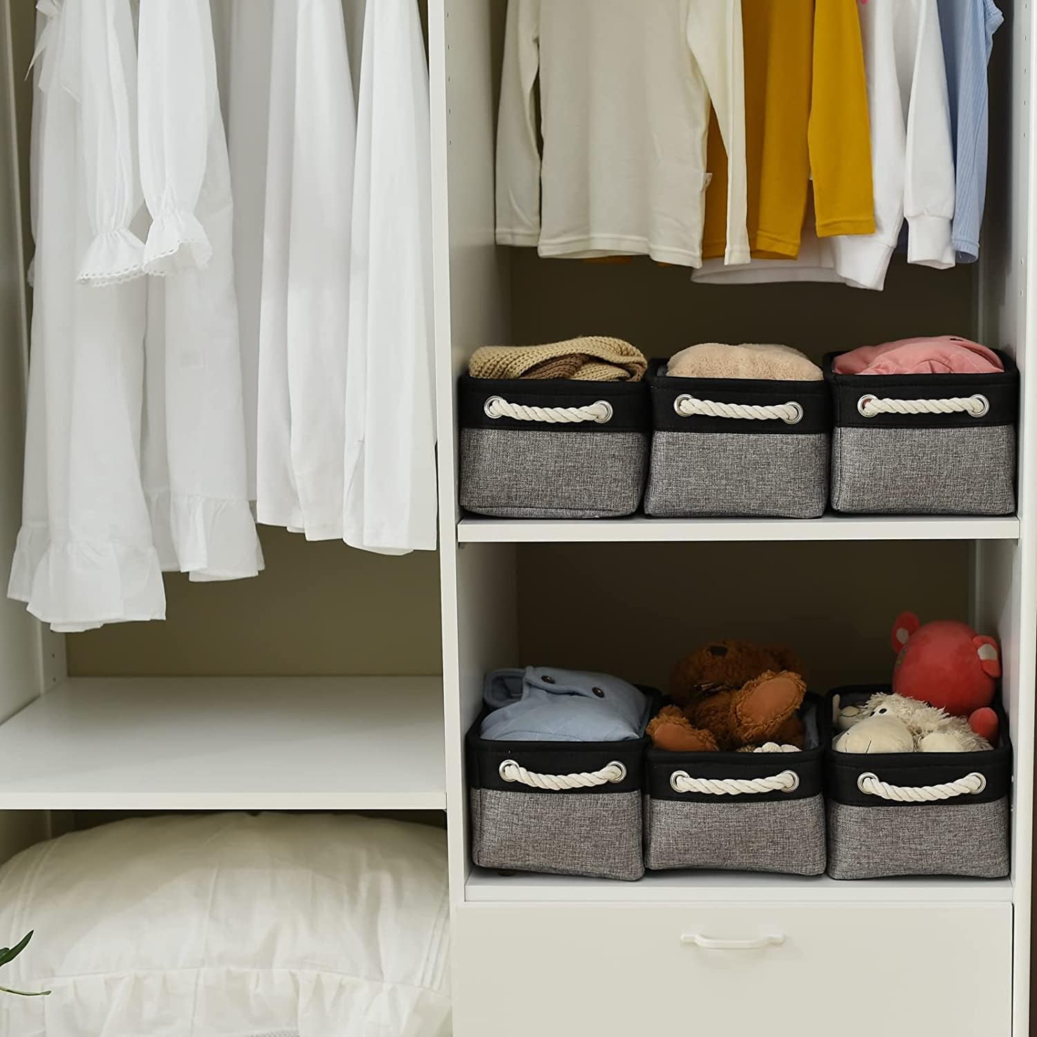 Sizes Becoming in wardrobe For garments closets in most households,chances are you’ll want a 20.5″x15.8″x13.8″(further jumbo) basket no less than to storage blankets,pillows,overcoat…Whereas for easy organzation for hats and summer season T-shirts,a 17″x13.7″x9.8″ (further giant)basket is sort of sufficient.