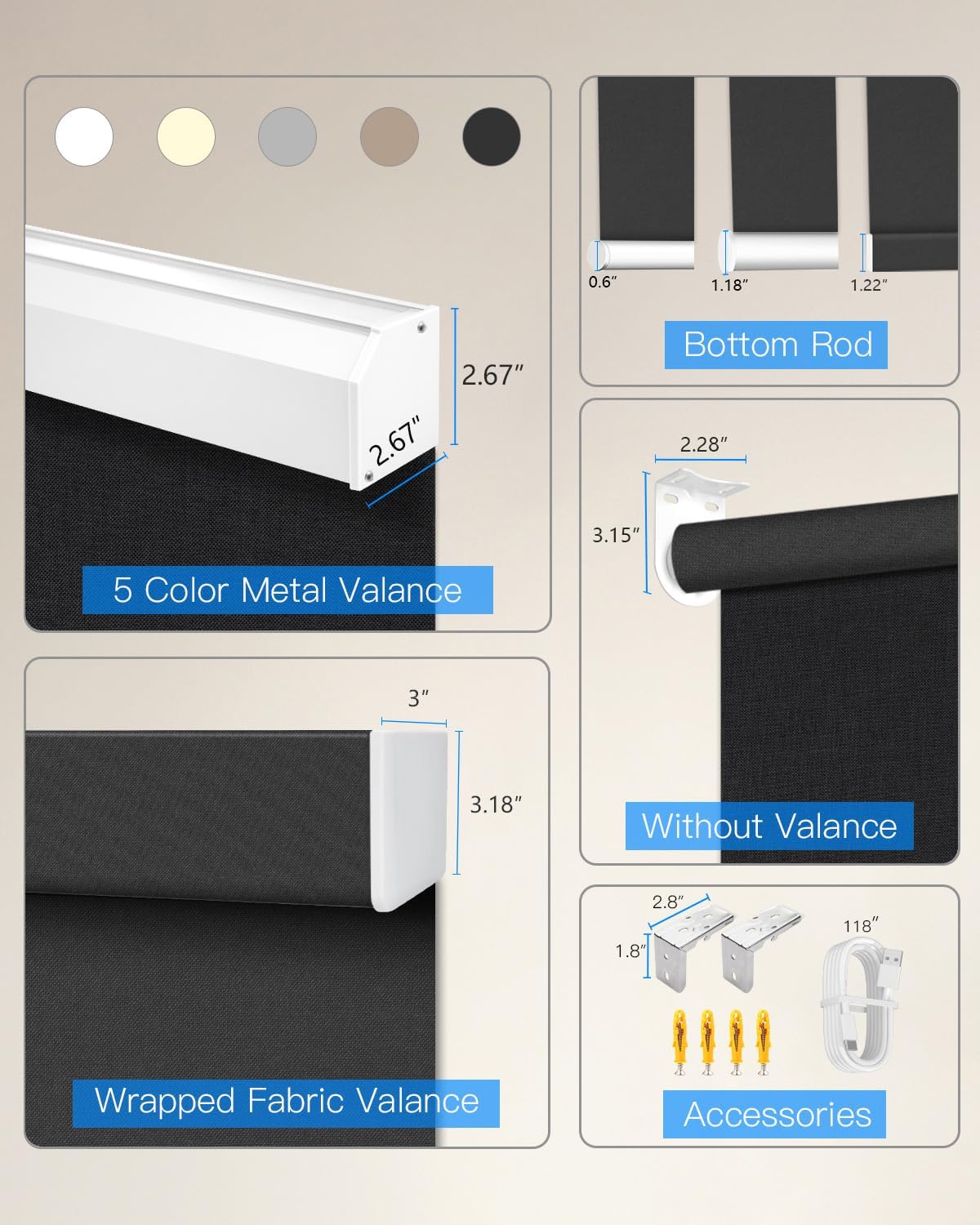 - Motorized Operation: Powered by a quiet motor, the roller shade opens and closes smoothly with the push of a button on the included remote control, eliminating manual cranking and reducing wear over time.