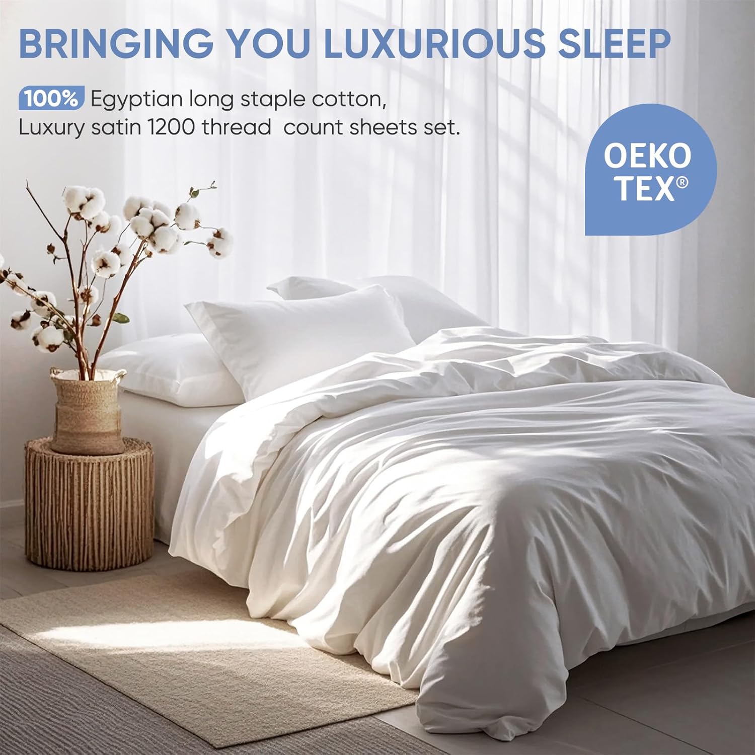 【Silky Gentle】Expertise cloud-like softness with extra-long cotton fibers that naturally weave right into a frictionless floor; Sateen weave enhances the luminous, silk-like drape whereas 1200-thread-count density ensures pill-resistant.