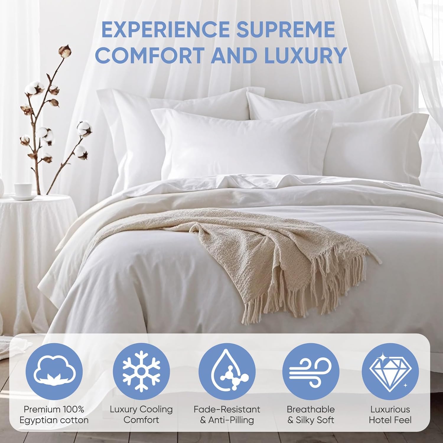 【Luxurious Really feel】1200 thread rely bedding crafted from 100% Egyptian long-staple cotton fibers; Silky sateen weave maintains breathable whereas delivering Luxurious hotel-grade softness permitting you to bask in a comfy night time’s sleep.