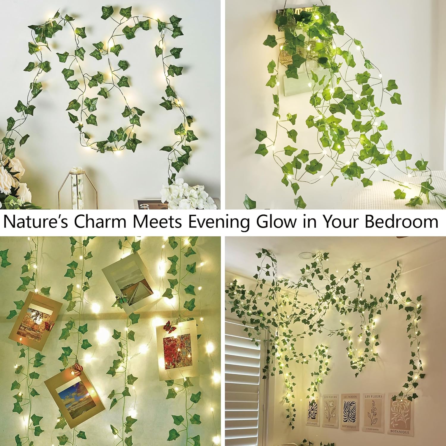 73 LED Heat Lights: Every vine string is interwoven with 73 heat LED lights, twinkling like fireflies hidden among the many leaves. The mushy and comfy illumination creates a fascinating ambiance of tranquility and romance, making it good for bedrooms, dwelling rooms, or night gatherings.
