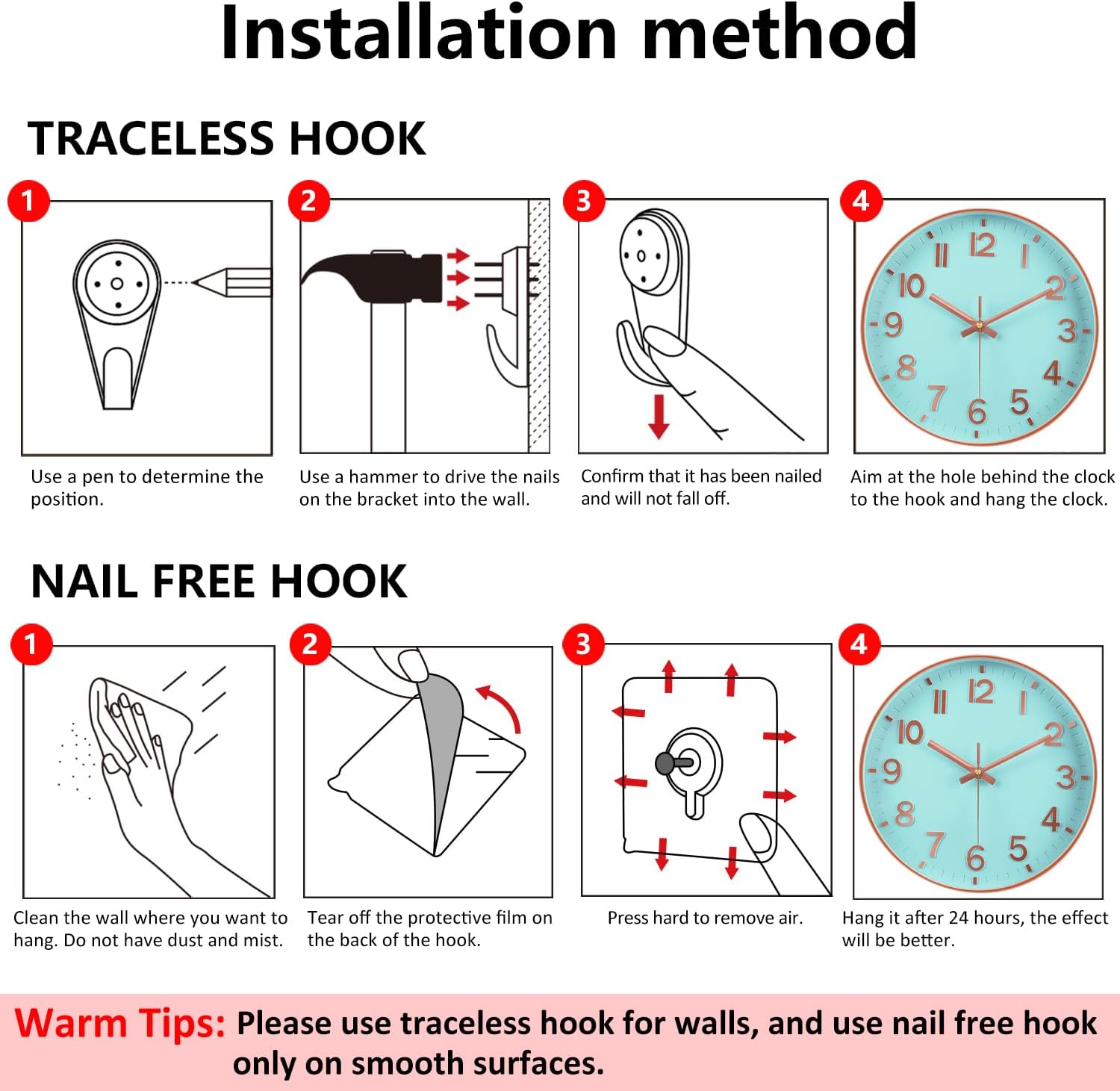 🔋Handy Wall Clocks Battery Operated: This wall clock is powered by a typical AA battery (NOT included), eliminating the necessity for electrical wiring or frequent replacements. The energy-efficient design ensures steady operation for over a 12 months, making it a hassle-free addition to any area. The battery compartment is firmly hooked up to the again of the clock and won’t come off. As quickly because the battery is put in, it may be used, which may be very handy, guaranteeing dependable efficiency.