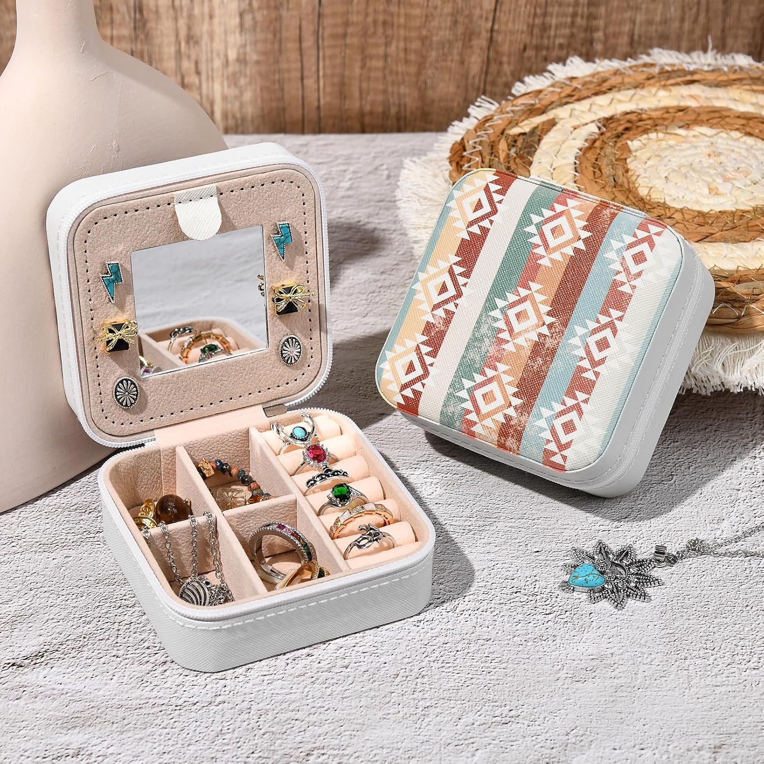 Be the first to review “Western Jewelry Box Case Boho Print Travel Jewelry Organizer Christmas Gifts for Women Country Girls Cowgirl Stuff Small Portable Travel Accessories for Women -White Boho”