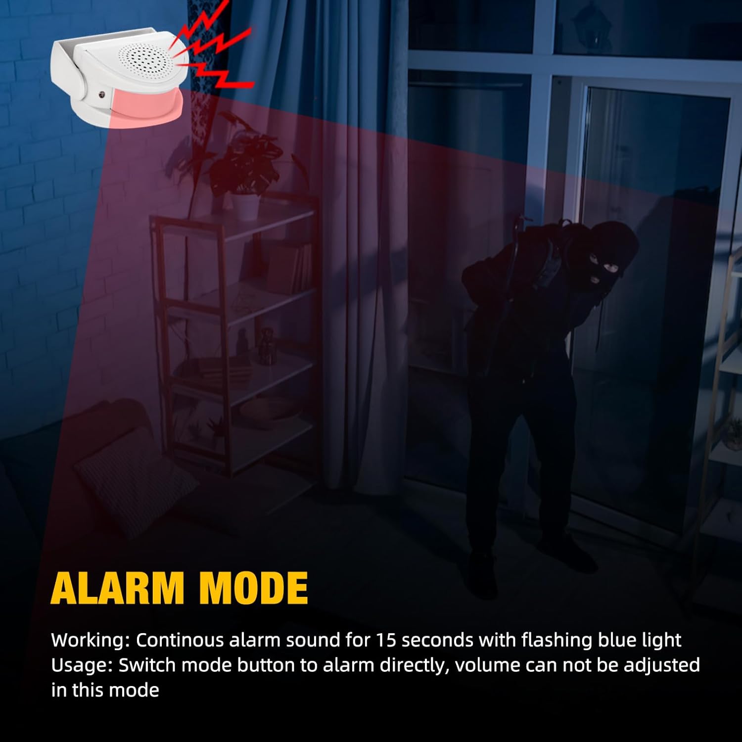 Versatile Energy Choices:The movement sensor alarm indoor has two energy sources:. Take pleasure in final placement flexibility with AAA batteries (batteries not included), or use the included 9-15V energy adapter for persistent and secure energy, guaranteeing your gadget by no means stops working.