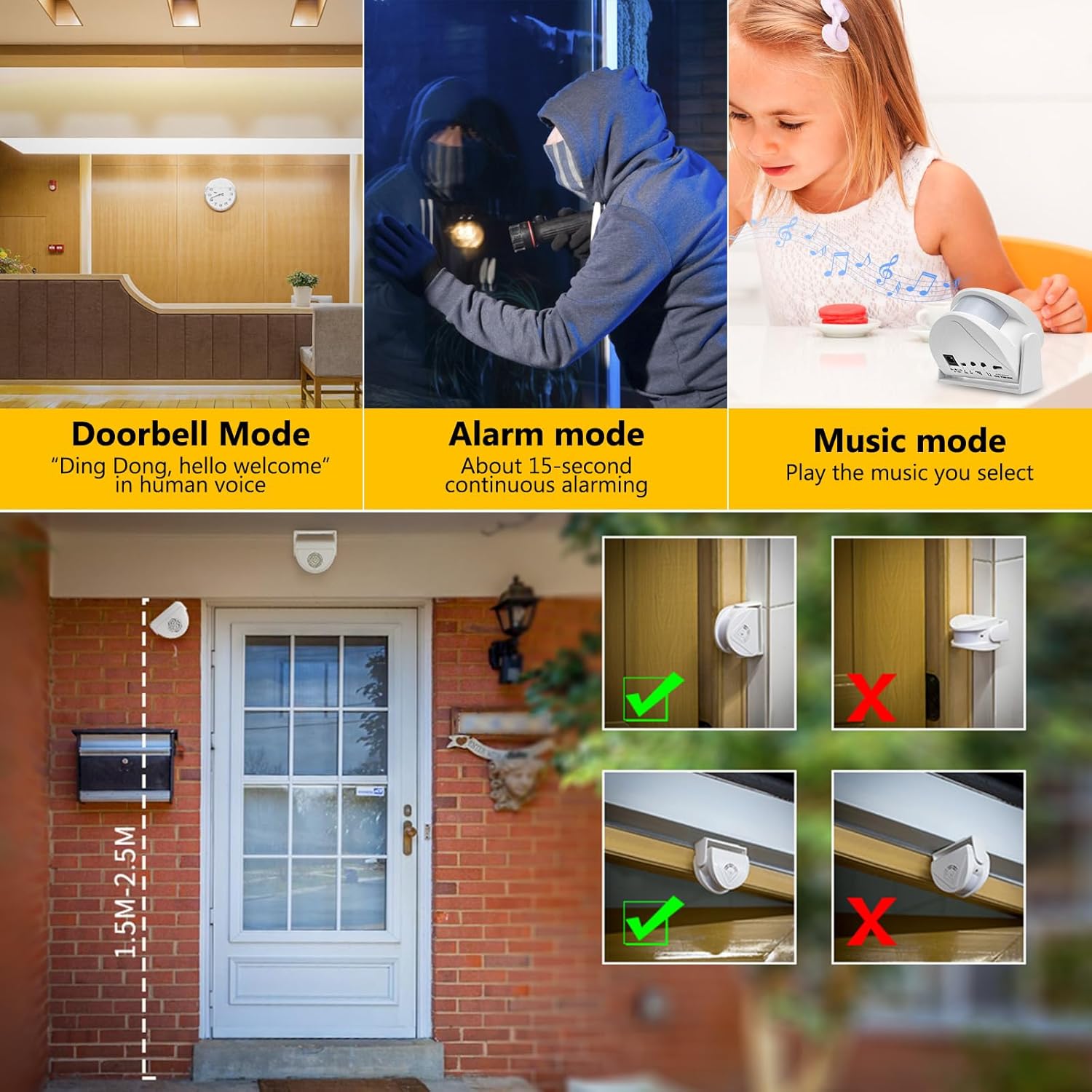 Twin-Operate Sensible Alert System:Expertise versatile safety with our superior movement sensor that serves as each a pleasant welcome chime and a dependable safety alarm. Excellent for shops, workplaces, and houses, it robotically detects guests whereas offering important safety monitoring.