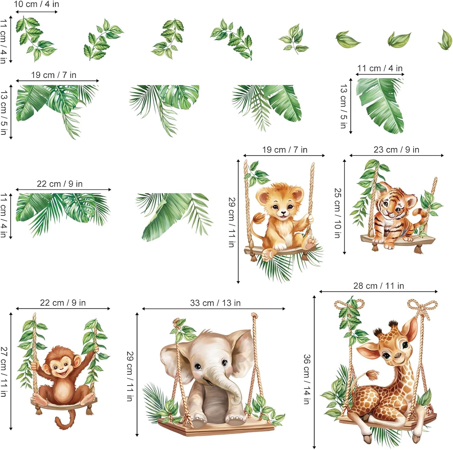 Contains 2 Stickers: Get 2 gorgeous jungle animal stickers in a single pack, that includes a lion, elephant, and giraffe, together with tropical leaves for added element