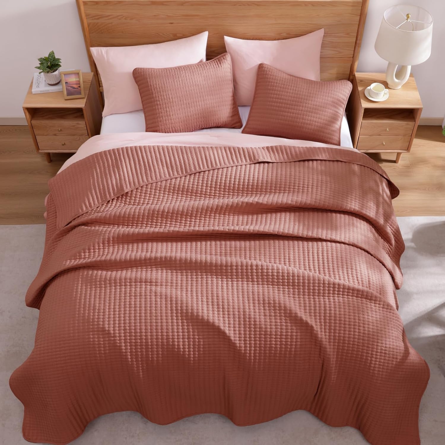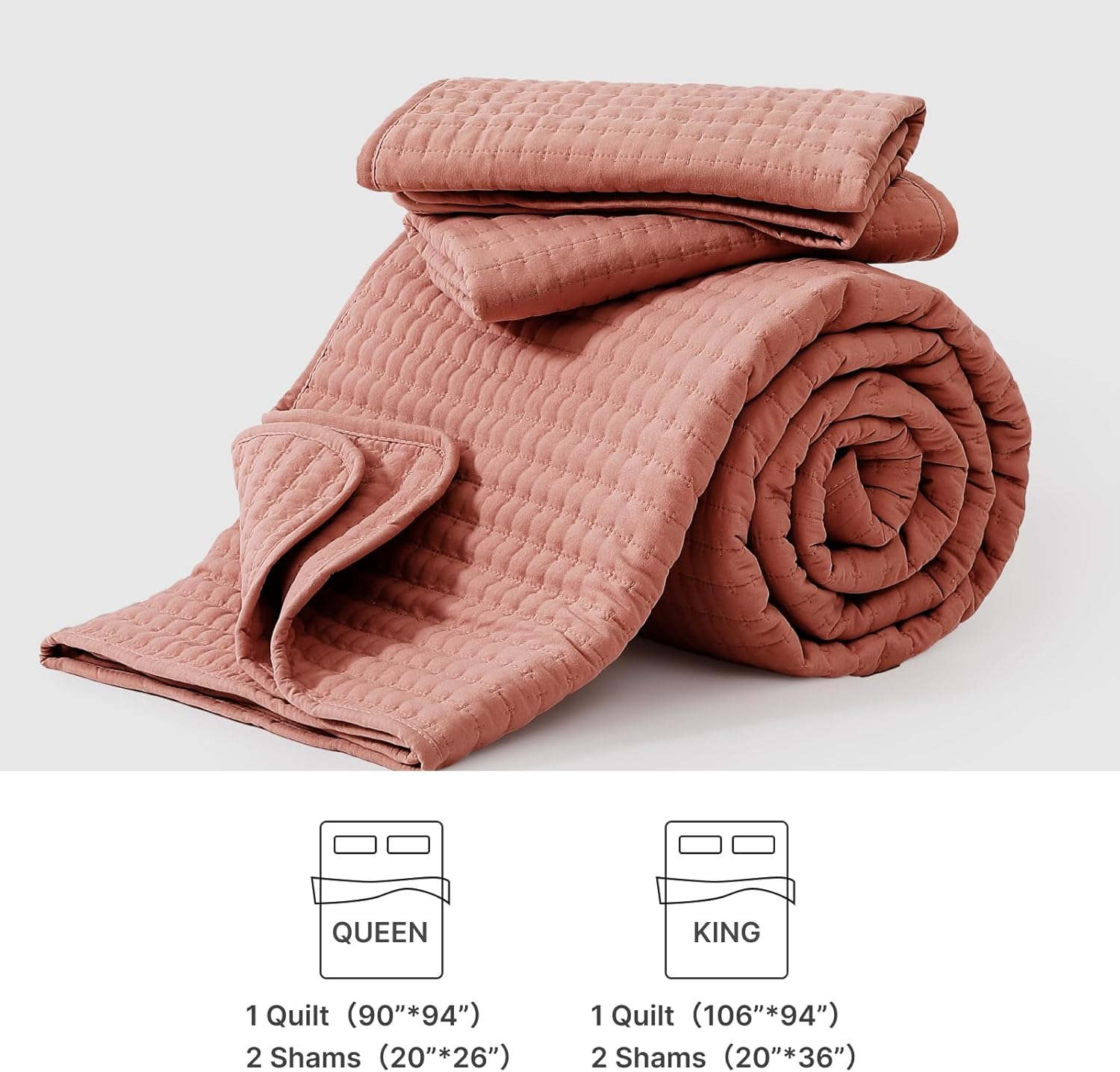 【Smooth & Breathable】Our queen measurement WRENSONGE quilts set are crafted from pre-washed premium material. This quilted bedspread is light-weight and breathable, making it supreme for all season, particularly in sizzling summer time nights. The high-tech yarn ensures a luxuriously delicate really feel whereas offering sturdiness that outperforms conventional cotton