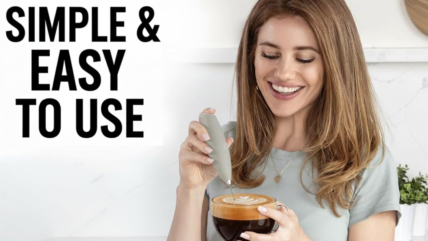 SIMPLE COFFEE MAKING EXPERIENCE: We have designed this hand blender with a comfortable grip and a simple on/off button. From your morning latte to whisking eggs for omelets, this electric whisk can do it all. Carry this portable frother handheld to make coffee anytime, anywhere.