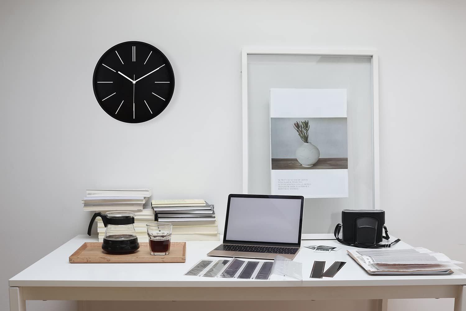 Simple to Learn: This wall clock have adopting integrally molded 3D white tick marks on the distinctive black dial that create excellent distinction towards. Curved floor pointers make it simple to learn time from any nook of our room.